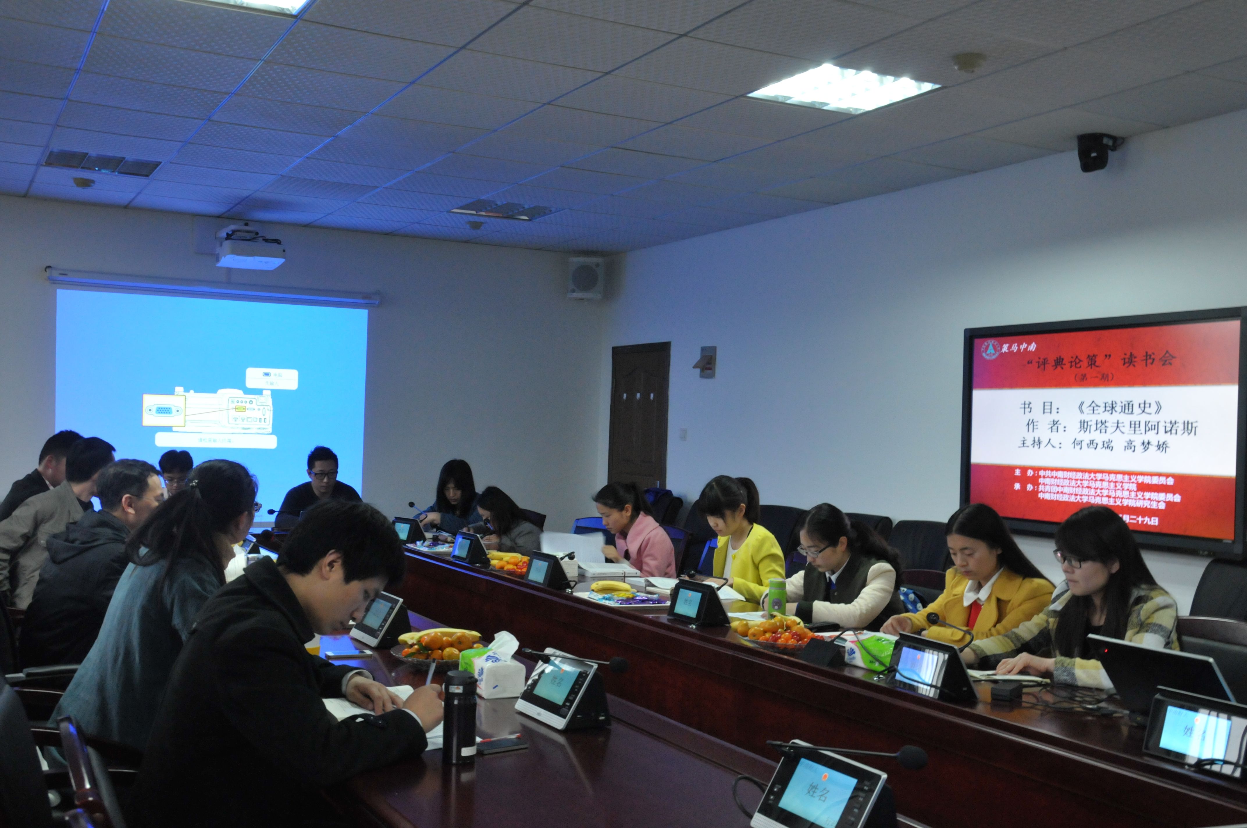 (通讯员 杨田晓 王贤友)2015年3月29日,马克思主义学院第一届“评点论策”系列读书交流活动在文沛楼402会议室成功举办。本次读书交流会由马克思主义学院何西瑞副教授和辅导员高梦娇老师主持。读书交流会选定的书籍是美国著名史学家斯塔夫里阿诺斯的经典之作《全球通史》。马院研一年级和研二年级的研究生们共同参与了此次读书交流活动。