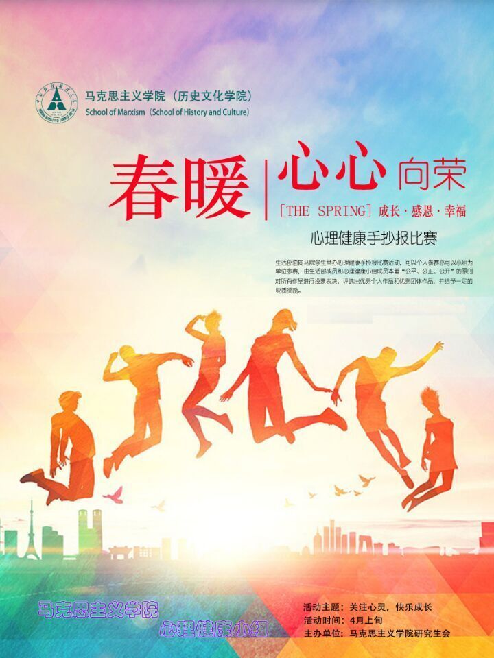 (通讯员:刘浏、祁迪蒙,摄影:何博) 2015年4月8日,马克思主义学院生活部成功举办了以“春暖·心心向荣”为主题的心理健康手抄报大赛。