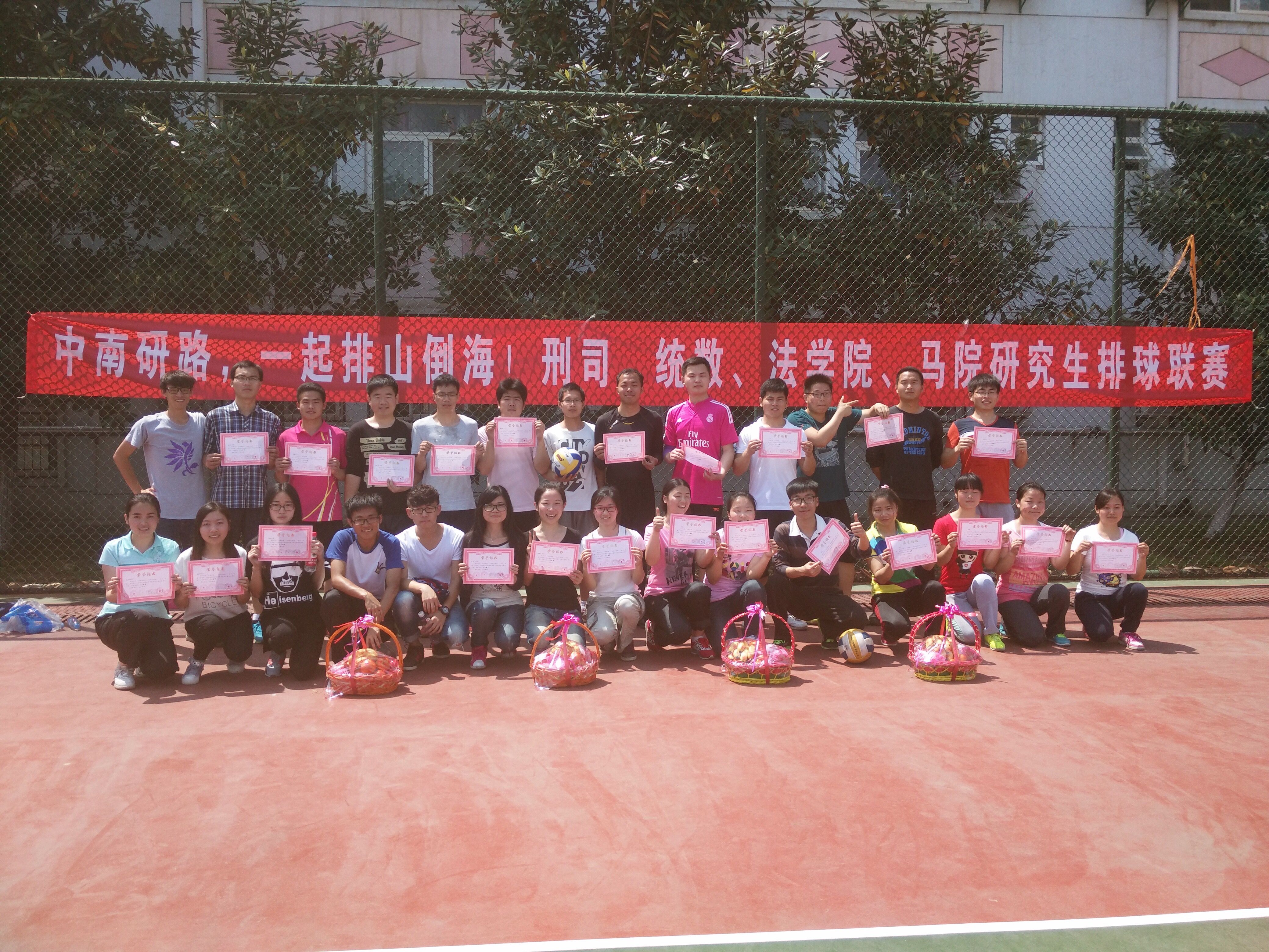 (通讯员 宋梅英 王晓飞 摄影:何博 佘蓝天)2015年4月26日上午,由刑事司法学院、法学院、统计与数学学院及马克思主义学院联合举办的“中南研路,一起排山倒海”男女混合排球赛在环湖排球场顺利举办,我院排球队历经激战荣获季军。