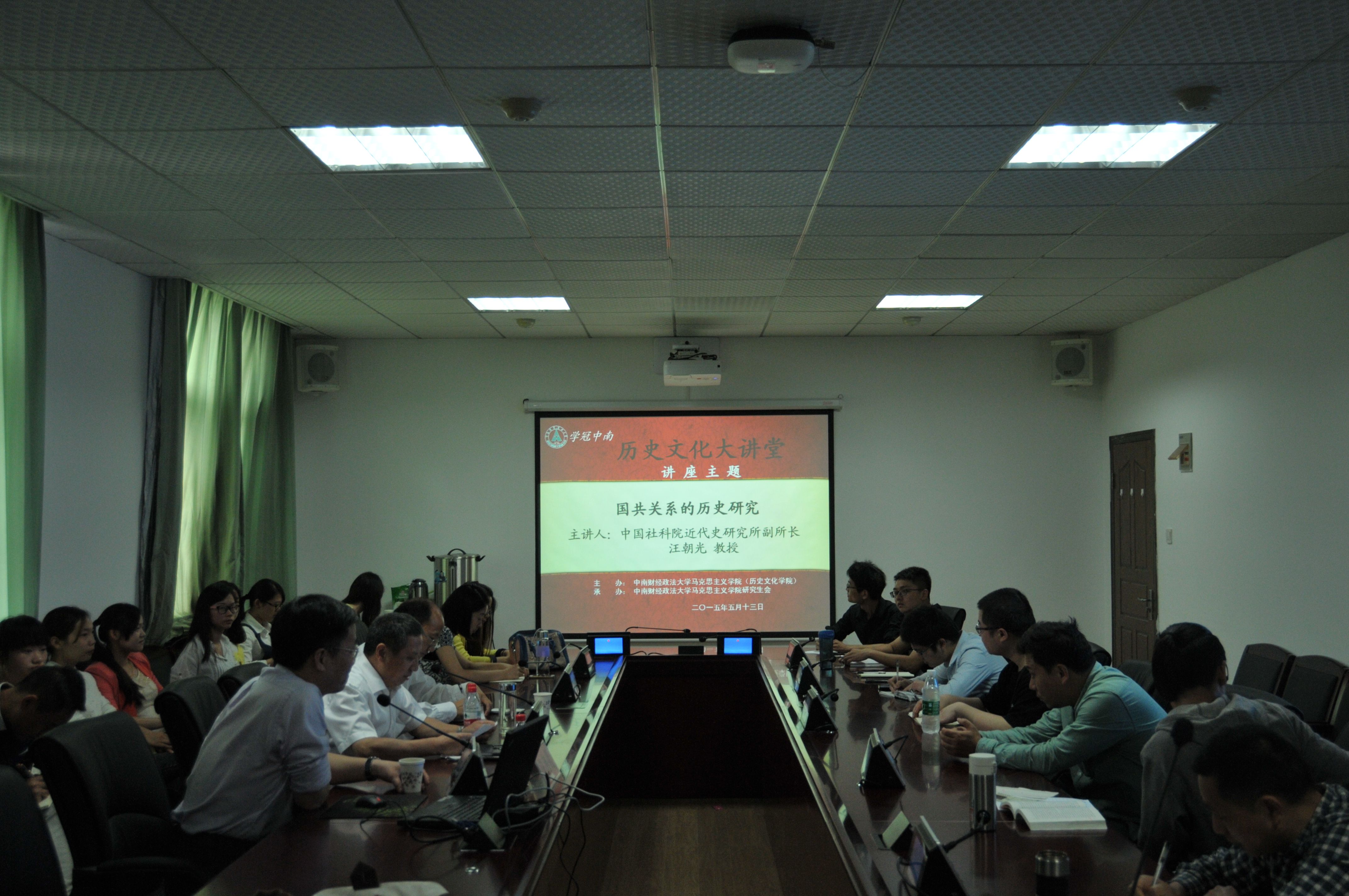 (学生记者 姬飞)2015年5月13日上午,中国社科院近代史研究所副所长汪朝光教授应我院邀请,在文沛楼402会议室做题为《国共关系的历史研究》的讲座,我院历史系与发展史等专业全体师生参加了本次讲座,本次讲座由朱书刚院长主持。