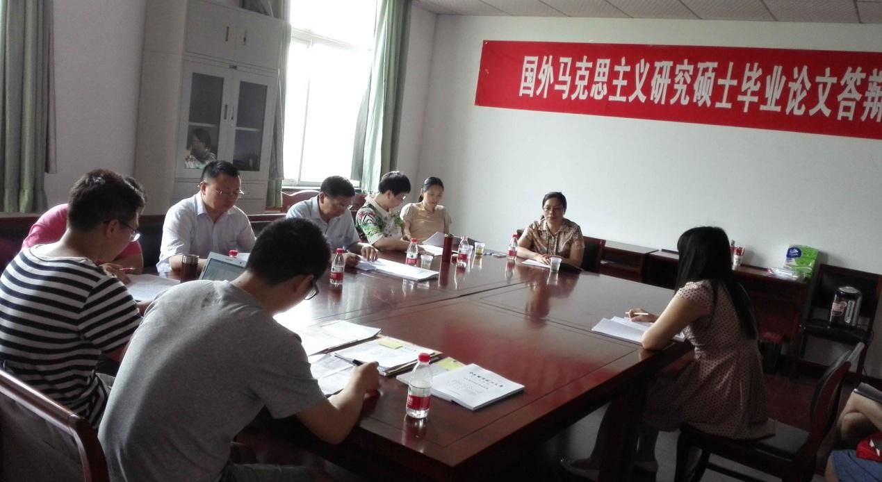 (通讯员:陈婧仪)2015年5月24日上午8:30,我院国外马克思主义研究专业答辩会于文沛楼马原理教研室顺利进行。本次答辩邀请湖北省社科院社长陈金清教授担任答辩主席,并由熊敏教授、吴宁教授等5位国外马克思主义研究专业等相关导师参加。