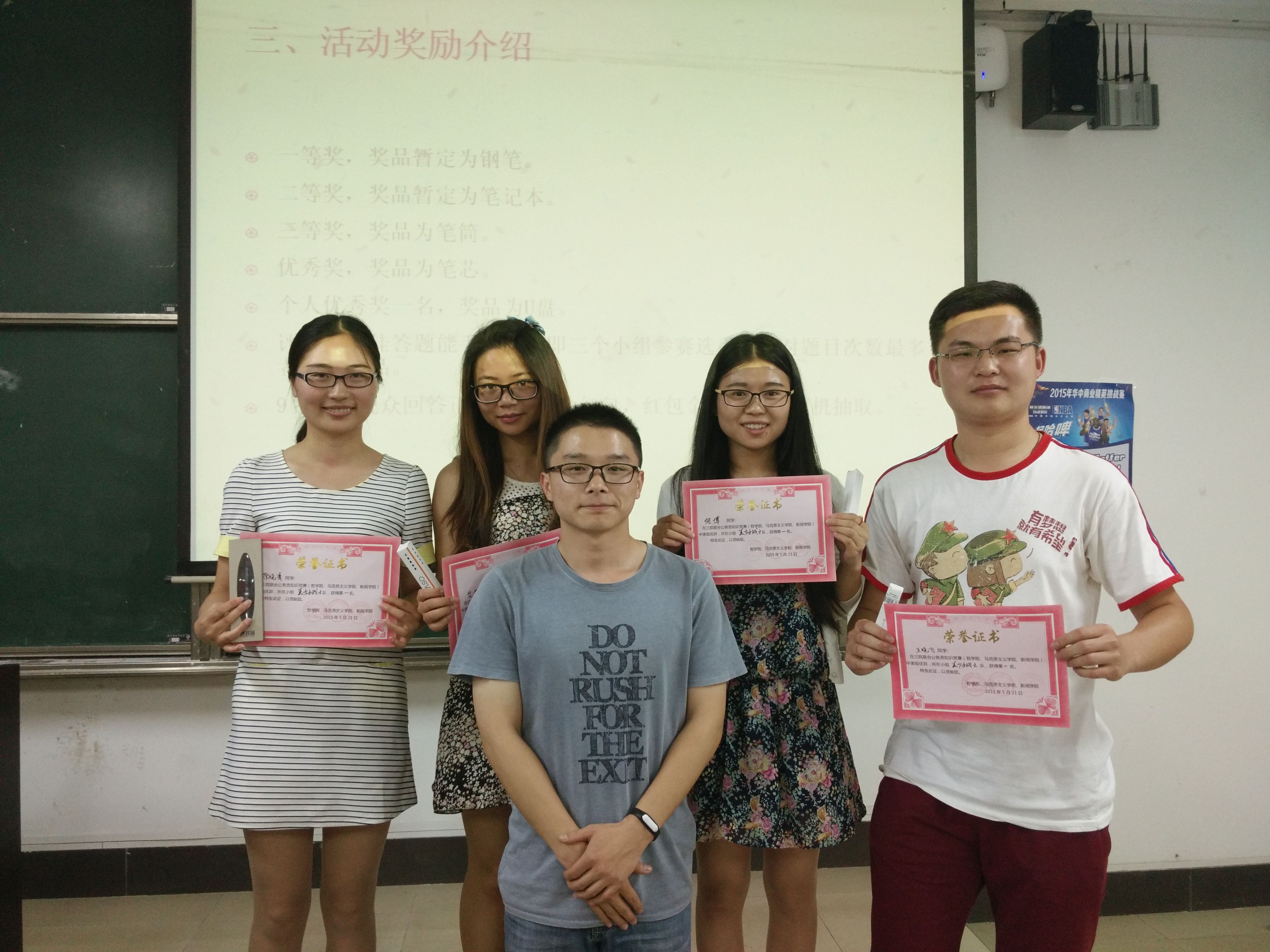 (通讯员 王贤友 徐晓青) 2015年5月21日晚,由哲学院、马克思主义学院和新闻与传播学院联合举办的“公务员知识竞赛”在文添楼105教室成功举办。本次比赛三院共派出4支参赛队伍,其中,马院“美少女战士队”在比赛中表现出色,获得本场比赛的第一名。