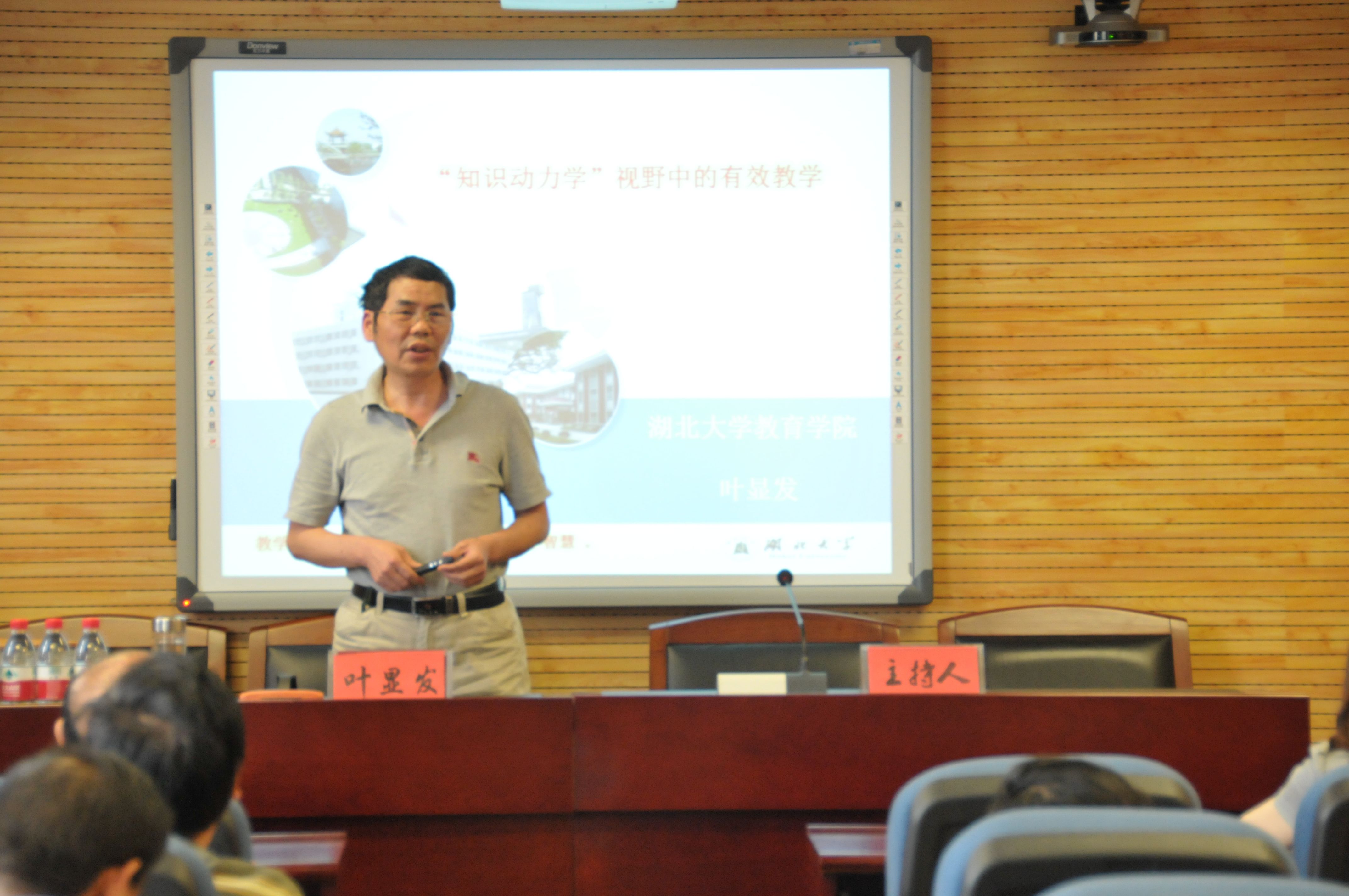 (通讯员 陈俊霞)6月11日下午,应学院之邀,湖北大学教育学院叶显发教授在文沛楼409室为全院教师作了精彩的讲座。讲座由李世黎副院长主持,我院龚先庆院长、朱书刚副院长以及全体老师出席聆听了讲座。