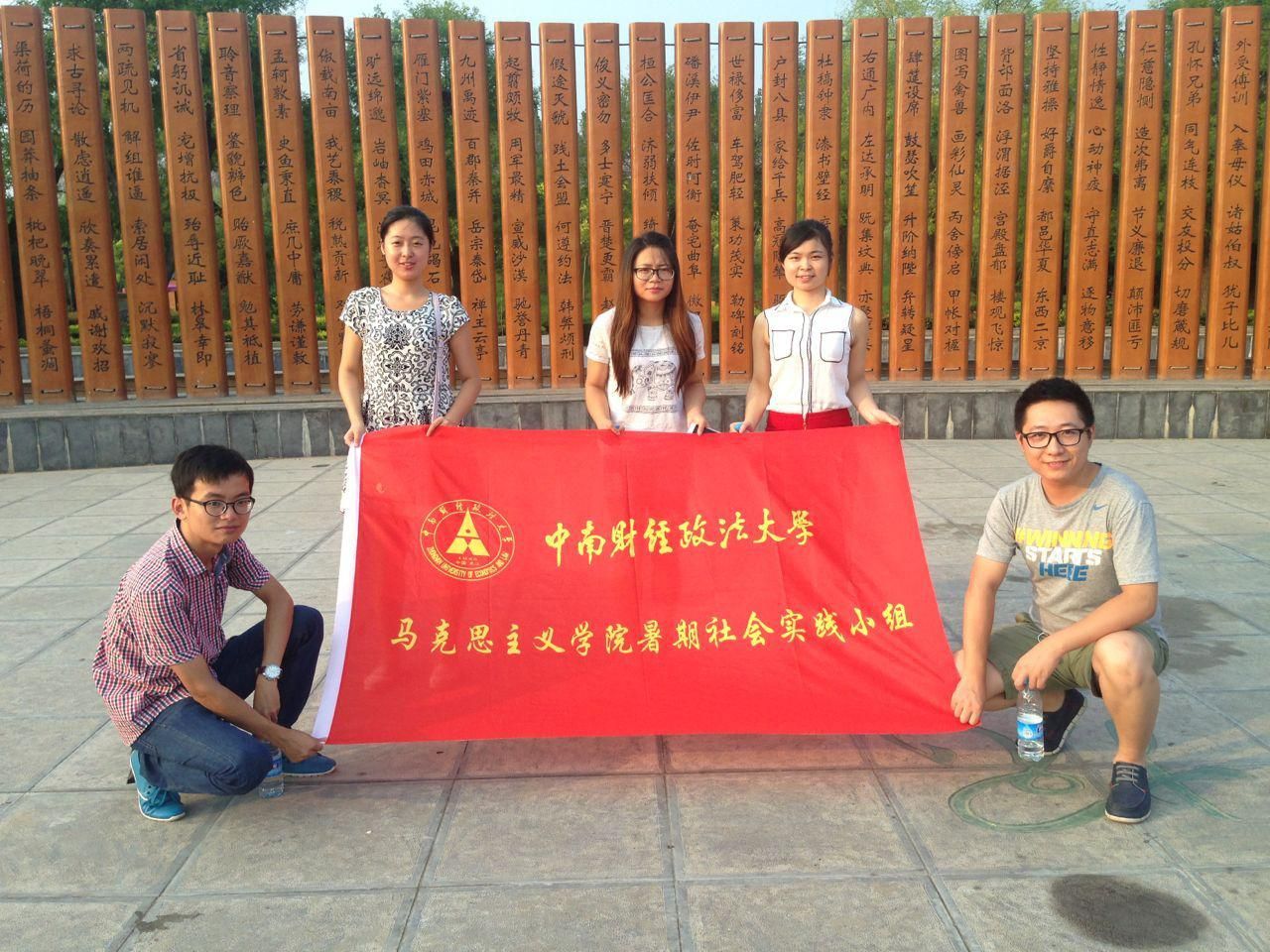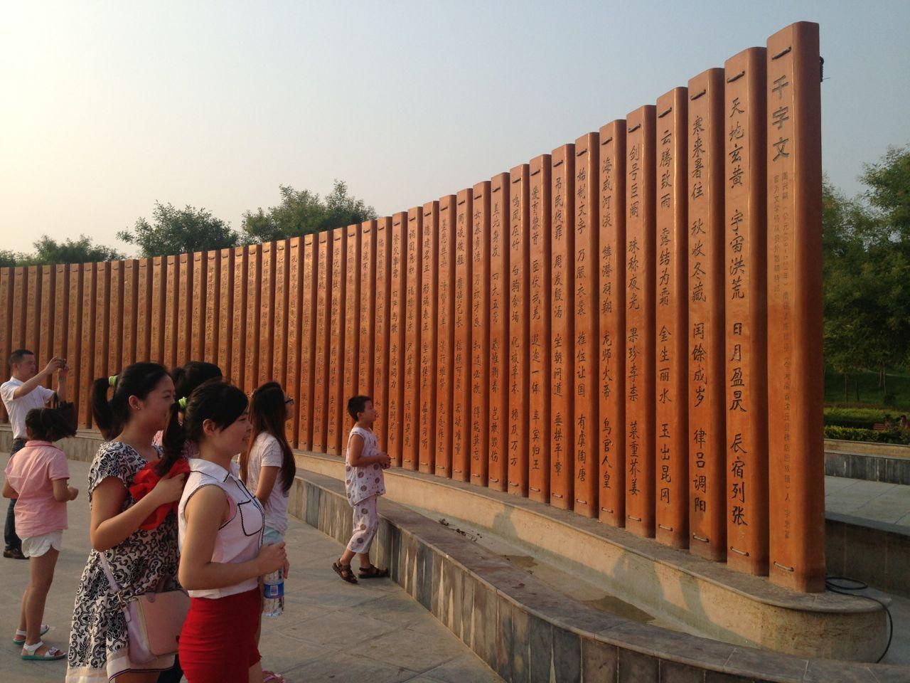 (通讯员 邹凯 曹明)2015年8月14日,马克思主义学院"文化之旅"暑期社会实践小组来到河南省沈丘县社会主义核心价值观主题公园——槐园,进行实践调研与考察活动。沈丘自古以来就是一方热地厚土,物华天宝,人杰地灵,南北朝时期,先人周兴嗣在这里编撰中国蒙学第一教材、中华文化经典之一的《千字文》。为纪念古圣先贤,光大民族传统文化,加快推进经济政治文化和社会主义生态文明的全面发展,该县深入挖掘槐文化、《千字文》文化、玉文化等文化内涵,先后建成开放中华槐园、千字文广场和周兴嗣主题公园。今天,该县以培育和践行社会主义核心价值观教育实践活动为契机,积极探索新时代的精神文明建设,开辟出一块人与自然和谐发展的新文化阵地。
