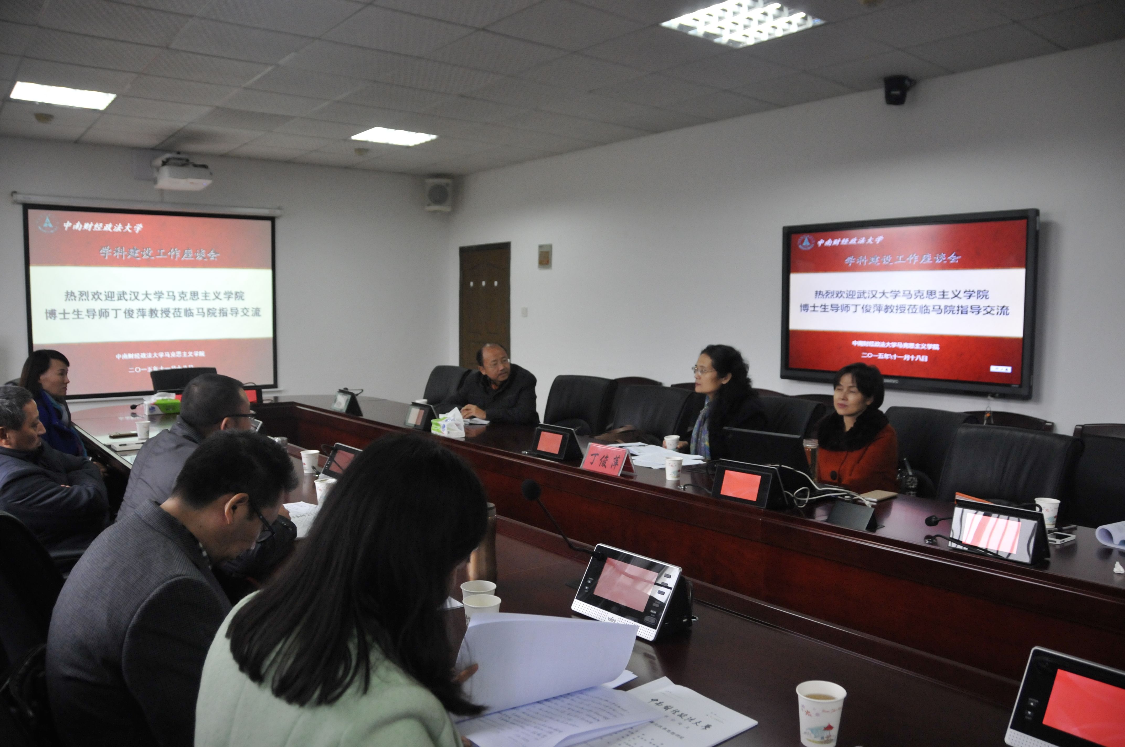 报告会开始前,龚先庆院长首先介绍了学院建院以来学科建设所做的努力和取得的成绩以及存在的不足,其他参会教师也表达的自己的想法。丁俊萍教授认真听取了我院领导和教师的讲述,然后先介绍了武汉大学马克思主义学院学科建设取得的成绩,并就其他高校建设马克思主义理论学科发表了重要见解。丁俊萍指出,学科建设、人才培养和科学研究“三位一体”,其中教学始终是基础;学术研究是高校马克思主义理论建设的根本性内容,是提升教学水平的重要前提,应通过科学研究项目凝聚人才、规划方向,同时必须树立学科意识,具有稳定而又集中的方向,打造学科平台,参加全国性学术交流,拓宽研究视野,提升本学科的影响力。丁教授还指出,马克思主义理论学科要树立社会服务的意识,积极承接政府、企业的重大课题,担负起引领社会前进的责任;马克思主义学科建设必须建立在“人”的基础上,要稳定大多数人才,使骨干教师在学科上走向前列,对人才要加强培养,走内部培养和外部引进两结合之路,走出去学习、学术交流,打造高水平的学术团队。丁俊萍教授结合自己多次主持国家招标项目、教育部重大招标项目的经验以及长期担任武汉大学中共党史、马克思主义中国化研究学科负责人的体会,就学科建设与专业建设、课程建设的内在关系,相类学科之间的互相支撑、优势互补、联动发展的关系,作了独到而又新颖的阐发。