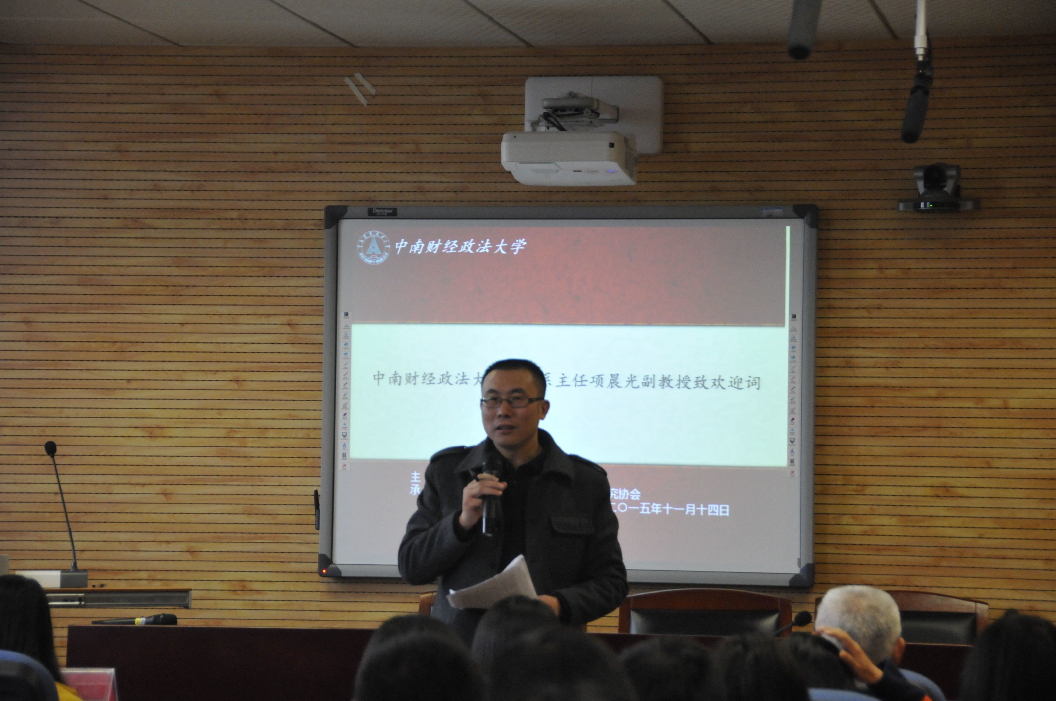 马院历史系主任项晨光副教授首先致欢迎词。项晨光老师代表马克思主义学院全体师生对刘行渤老师的到来表示衷心的感谢,高度赞扬了在以刘行渤教授为代表的前辈带领下,湖北省董研会取得的成绩。此外,项晨光老师向大家介绍了董必武先生不平凡的一生,并着重对董老先生的革命思想和董老先生与毛泽东的友谊进行了讲解,充分表达了对董老先生的敬重和钦佩之情。