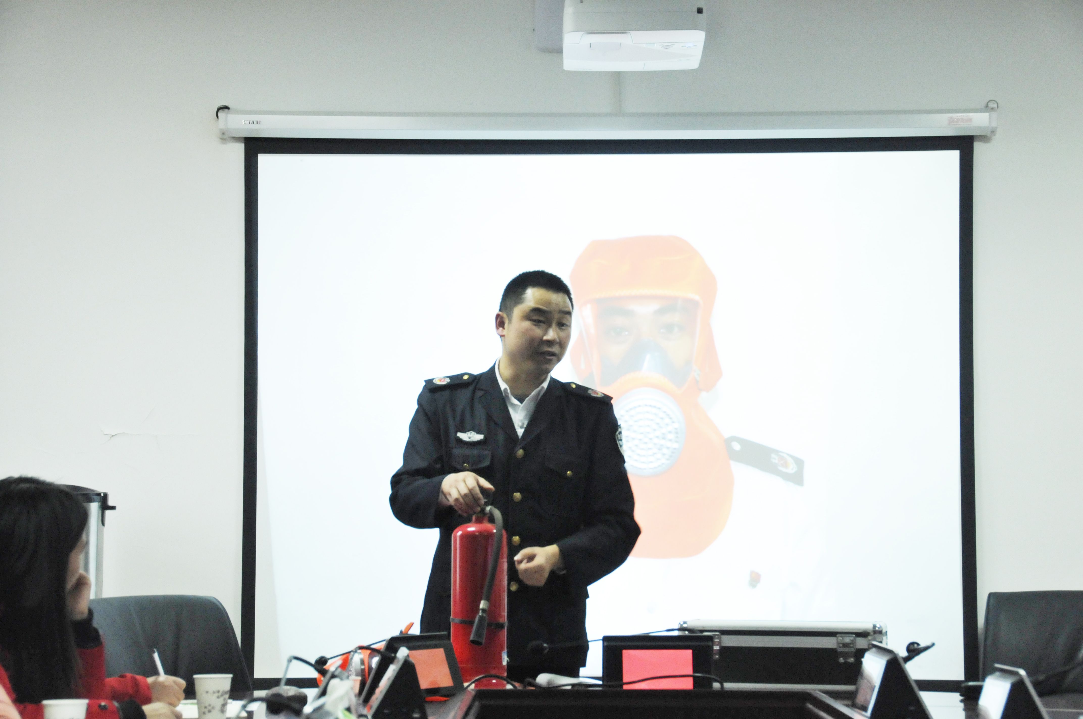刘警官讲,现实生活中有太多的事例是当发生火灾时,有灭火设备,人们却不知道如何使用。因此,刘警官现场给我们演示了戴防火面具的方法。刘警官还给我们演示了干粉灭火器的使用方式,并起我们详细介绍了灭火器的分类和注意事项。另外,刘警官告诉大家面对火灾时,会看不清道路,要保持冷静,想清楚逃生的正确道路,不能盲目的从众,也不能盲目的向光源走去。万一没办法逃生,就尽量找个角落等待救援,有窗户的卫生间是最佳选择,切勿盲目跳楼逃生。