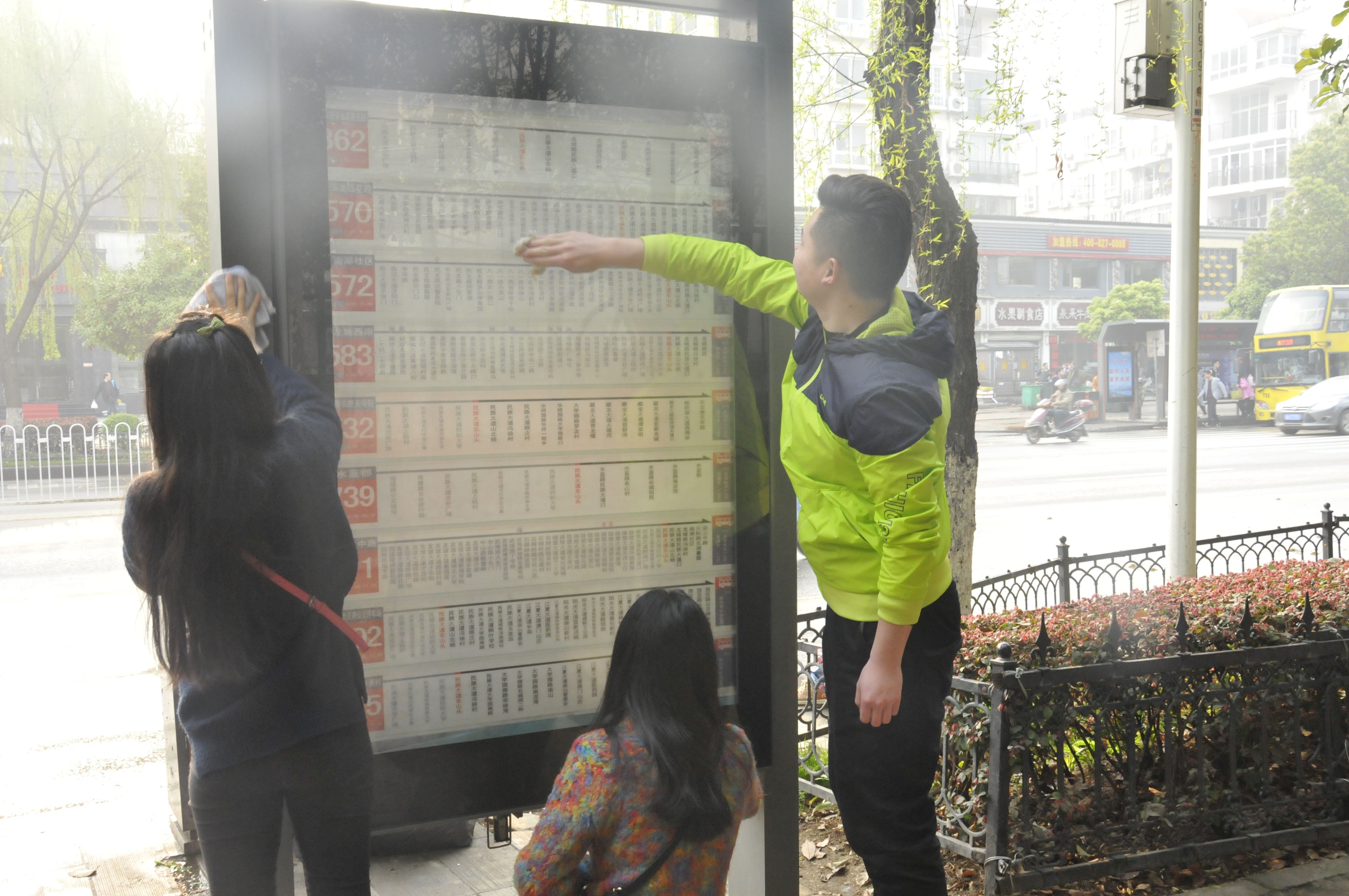 此次活动志愿者们干劲十足,7:30集合完毕,带上抹布、水桶和洗衣粉各自按照活动分工开始清洗茶山刘和东山头的公交站牌。春夏之际室外灰尘多,擦拭清洁公交站牌,可以让大家在等候的时候有一个干净舒适的环境,同时也是想通过具体的行动支持环保,让武汉更美丽。