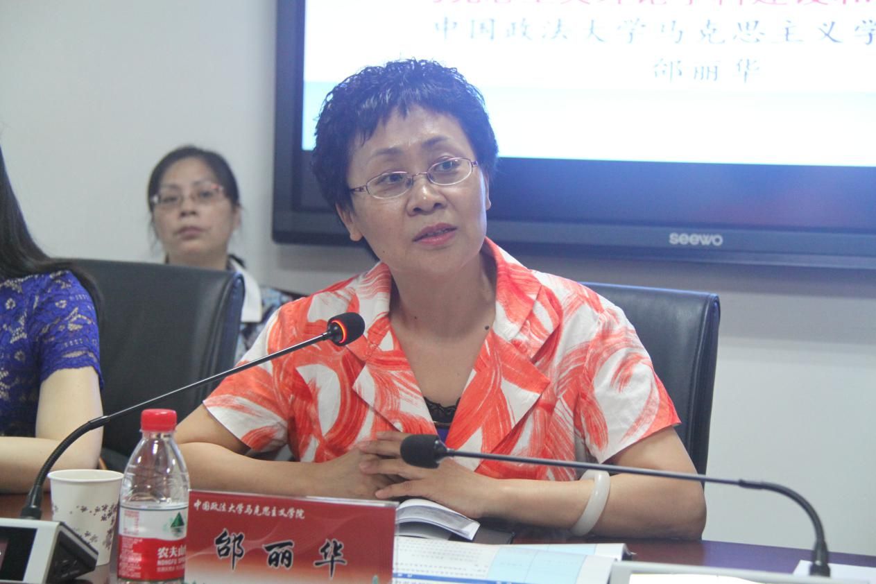 中国政法大学马克思主义学院院长邰丽华教授围绕《全面依法治国视域下的马克思主义理论学科建设和教学创新》进行主题发言,她介绍了北京地区思政课开展经费扶持的情况(思政课教师专项津贴每人每月2000元)和中国政法大学思政课特级教授(每人每年支持经费20万,三年为一周期)和特级教师(每人每年支持经费10万,三年为一周期)的设置情况;她还介绍了发挥京津冀地区高校资源优势打造“中国政法大学马克思主义与全面依法治国协同创新中心”,增强协同创新的引领能力,建设一流的马克思主义理论研究的高地、决策咨询智库和人才培养基地,培养一批拔尖创新人才,产生标志性的重大成果。
