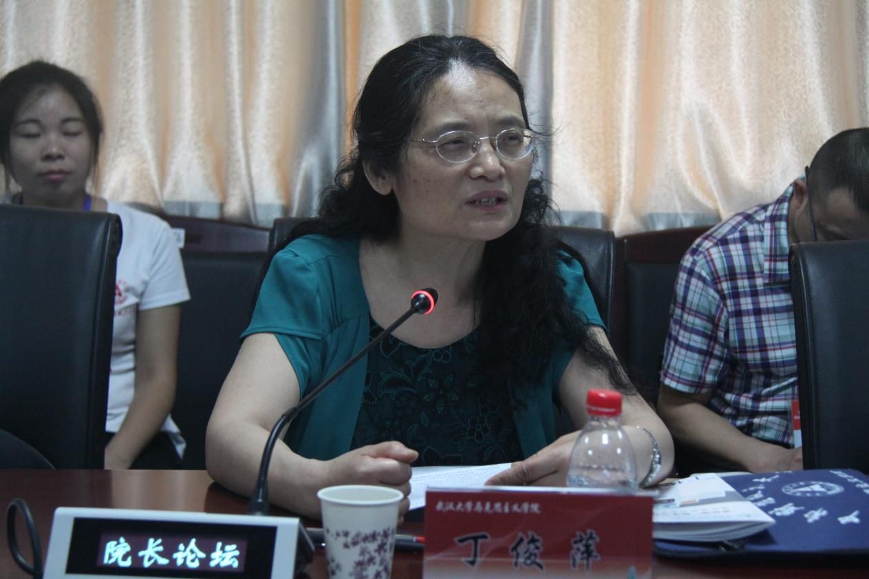 武汉大学马克思主义学院博士生导师、教授丁俊萍为论坛分享她的成果《马克思主义理论学科建设的若干问题》,她谈了几点思考:①马克思主义学院建设和思政课建设必须以马克思主义学科建设为龙头,以马克思主义学科引领高校思政课建设和学院建设。②如何进行马克思主义学科建设。马克思主义学科建设要以人才培养为基础,科学研究为中心,以社会服务为拓展,全面进行马克思主义学科建设。③团结合作。要科学发展,凝练学术方向,持续开展研究。④社会服务是一种责任,必须以人才培养、科学研究为依托。④要积极争取学校支持,搭建学院发展平台。⑤学院的建设,要特别重视学院领导班子建设,发挥各种委员会作用,加强学科点和学科群建设 。