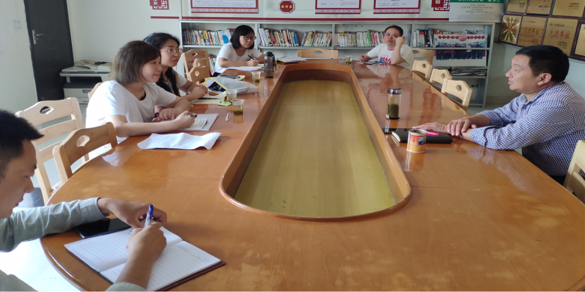 11日上午,调研小组一行来到了店垭镇政府,店垭镇的骆镇长就和我们进行了详细地交谈,骆镇长安排了相关负责人员帮助我们查找资料,了解店垭镇的乡村振兴现状及格栏坪村的产业发展和各方面建设。通过查看店垭镇与格栏坪村的建设蓝图及未来发展规划书,我们了解到格栏坪村历史悠久,是一个历史古村落,有着深厚的文化底蕴。格栏坪村发展的同时不忘环境保护,2015年时被国家农业部授予“中国最美休闲乡村”的称号。下午,调研小组一行非常荣幸地与乡村振兴负责人进行了访谈。负责人为我们介绍了店垭镇及格栏坪村的乡村振兴现状,着重阐述了在茶产业方面的发展模式及目前收益,在生态方面主要采取了组建宣传小组及完善基础设施的策略,在乡风方面重视乡村传统文化的保护以及开展新的文化活动等。