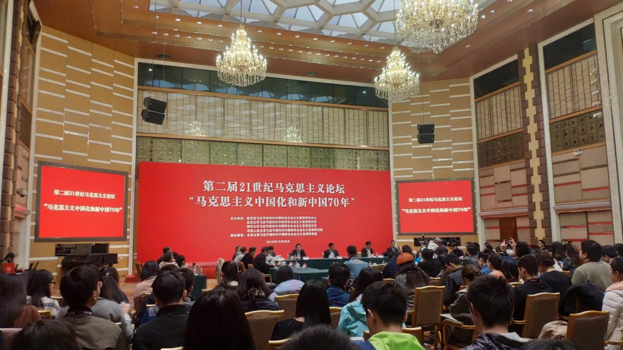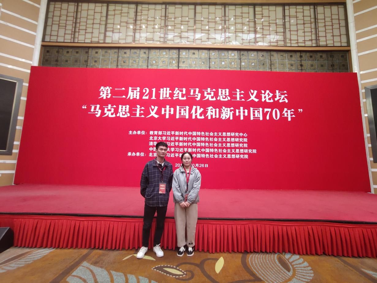 (通讯员 张陈伟 李婷)为庆祝中华人民共和国成立70周年和深入学习贯彻习近平新时代中国特色社会主义思想,回顾新中国成立70年以来中国特色社会主义发展的历史进程,深入总结新中国成立70年以来马克思主义中国化的理论创新和实践创新成果,2019年10月26日,第二届21世纪马克思主义论坛在北京大学举办。围绕本次论坛主题——“马克思主义中国化和新中国70年”,来自全国各地的100余位专家学者展开了深入研讨。本次论坛由教育部习近平新时代中国特色社会主义思想研究中心和北京大学、清华大学、中国人民大学习近平新时代中国特色社会主义思想研究院共同举办,北京大学习近平新时代中国特色社会主义思想研究院承办。我院学子李婷、张陈伟受邀参加本次论坛。