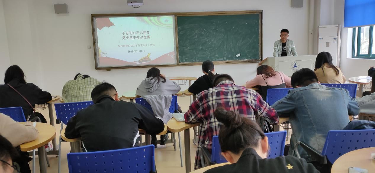 (通讯员 黄晴)为贯彻党的方针政策,促进我院精神文明建设,铭记党史国史,米兰电竞·(中国区)马克思主义学院于11月6日12时在文澴楼235室举办党史国史专题知识竞赛,本次竞赛由研究生第一党支部主办,马克思主义学院研究生第一、第二党支部全体党员参加。