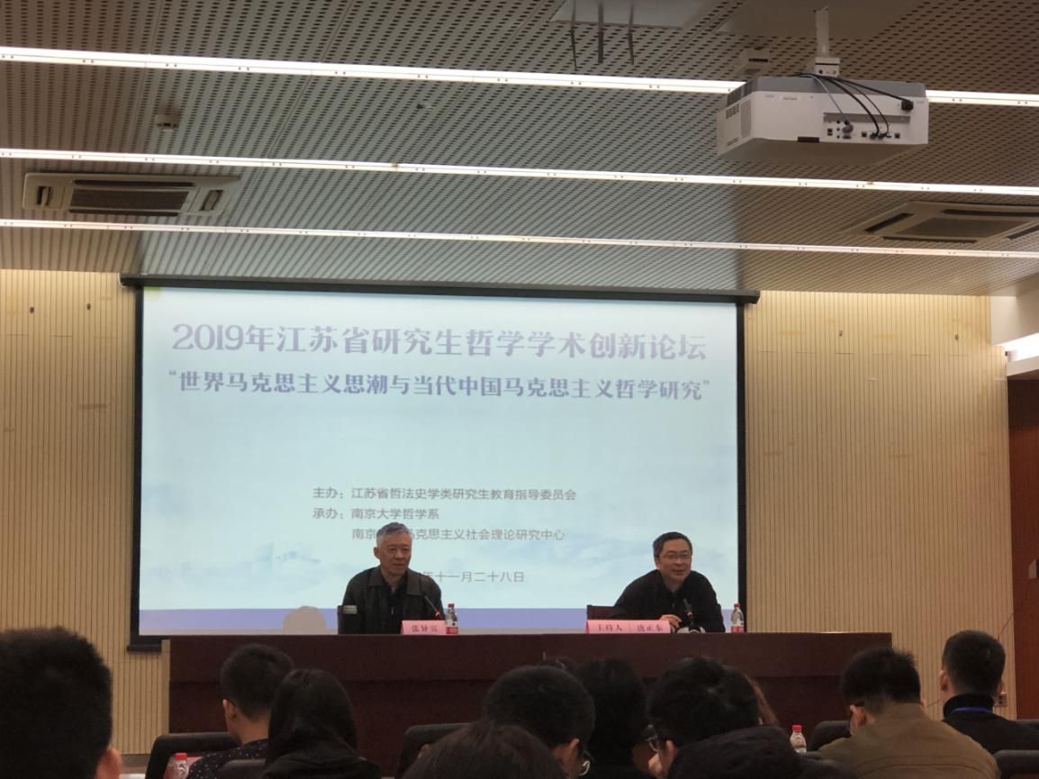 (通讯员 张陈伟)由江苏省哲法史学类研究生教育指导委员会主办,南京大学哲学系、南京大学马克思主义社会理论研究中心承办的2019年江苏省研究生哲学学术创新论坛于2019年11月28日在南京大学仙林校区成功举办。本次论坛的主题是“世界马克思主义思潮与当代中国马克思主义哲学研究”,来自清华大学、南开大学、吉林大学、南京大学等国内多所所高校、党校的代表受邀参会。我院研究生张陈伟同学受邀参加了会议。