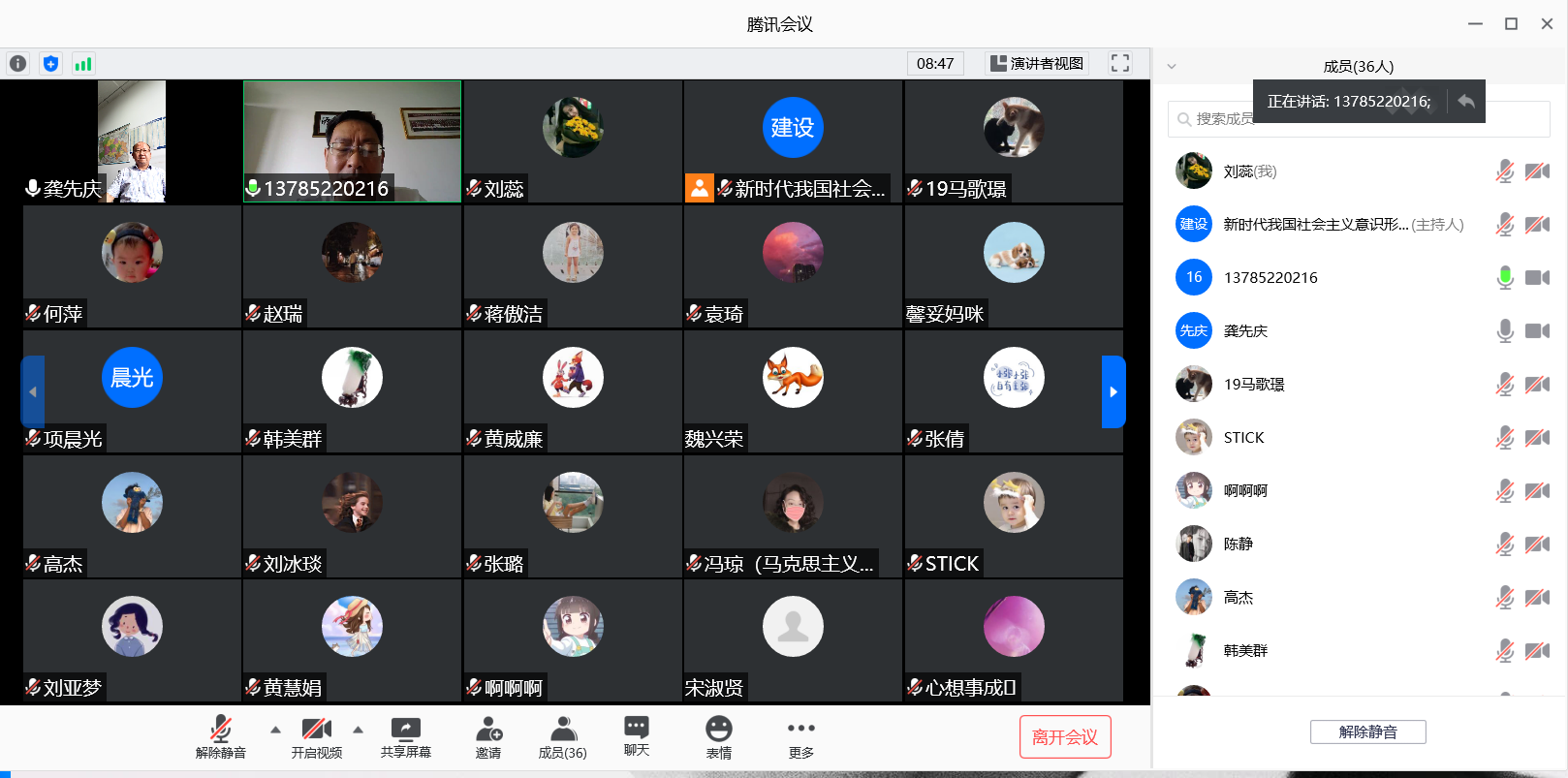 (通讯员 张紫媛 图片来源 刘蕊)2020年6月18日上午,河北大学马克思主义学院副院长、教授、博士生导师田海舰教授应邀来我院讲学。此次讲座以线上会议的方式进行,围绕“新时代我国社会主义意识形态建设面临的挑战及应对”这一主题展开,讲座由马克思主义学院院长龚先庆教授主持,副院长韩美群教授、学科群教师等40余名师生共同参加。