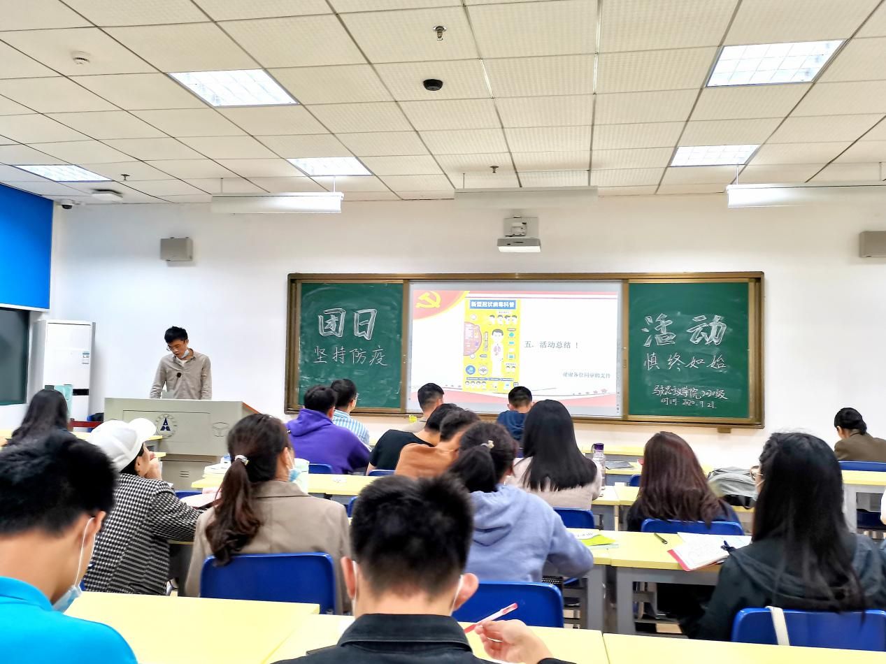 最后,团支书指出,做好防疫工作,是为了防止坏的可能变为现实,树牢防疫意识,是把好的现实延续下去。通过此次主题团日活动,全体成员深刻了解了防疫的重要性,并纷纷表示要在积极配合学校防疫工作下,主动作为,积极防护,用实际行动为防疫工作贡献出自己的青春力量,齐力对抗疫情,一起打好人生第一场”防疫保卫战”!