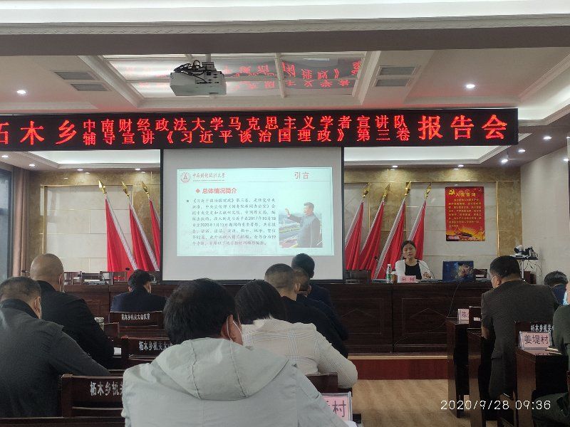 9月25日、28日,赵炎才教授先后在新沟镇、市政府综合系统、棋盘乡、市交通系统宣讲。赵教授结合自身的研究方向和研究重点,抓住重点,有的放矢,对《习近平谈治国理政》第三卷的核心内容进行了深度解读和阐释,为广大听众深刻认识《习近平谈治国理政》第三卷的核心内容提供了有益启示。