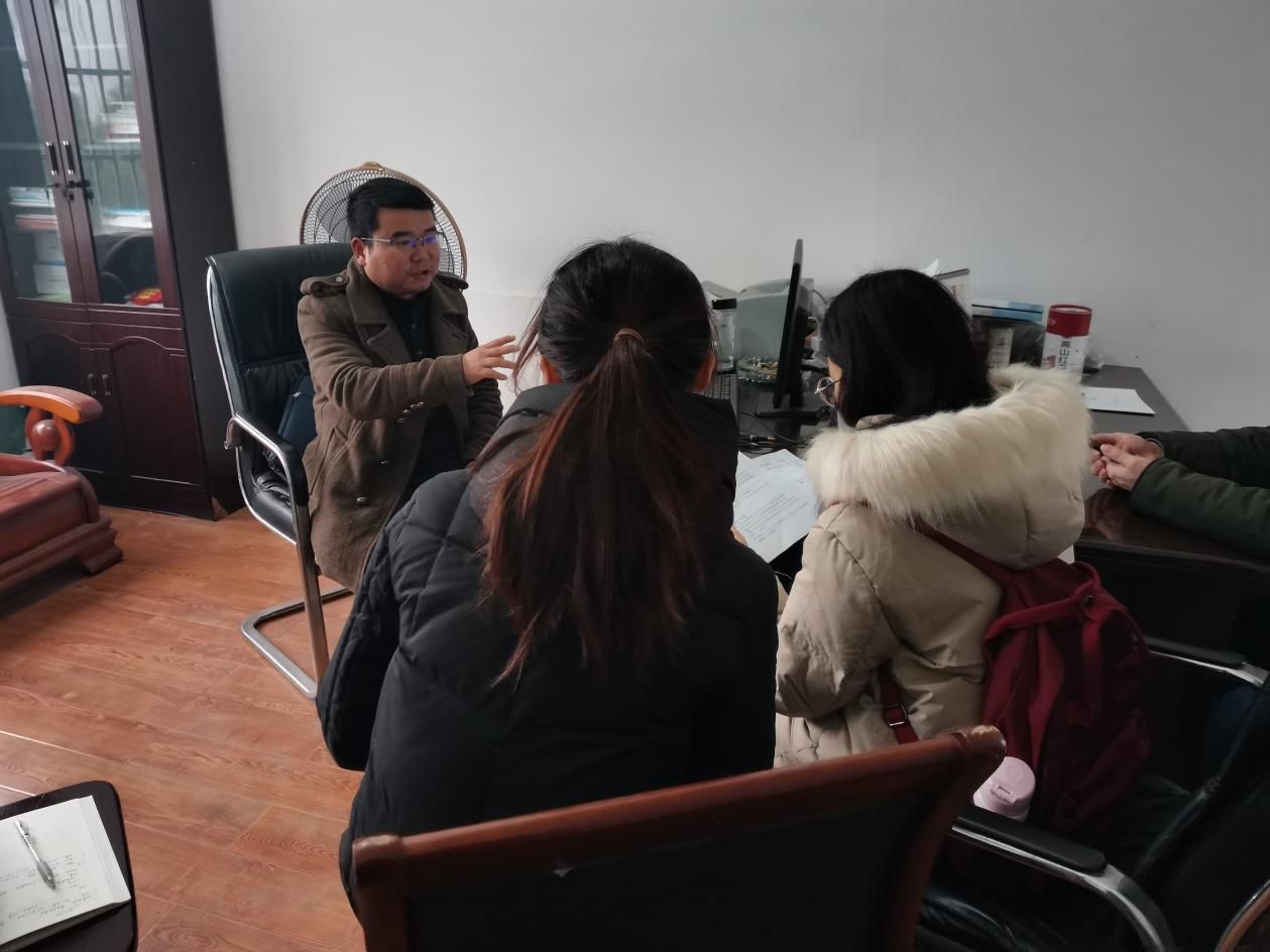 1月6日,调研小组对直荀中学师生进行了问卷调查和访谈,并在吕巍同志的协助下,调研小组登门走访了两位革命烈士后代家属,对他们进行了有针对性的采访。并就在前期采访中了解到周老嘴镇正在进行的项目建设,对项目负责人高飞飞进行了访谈,并就美丽乡村建设落实问题与火轮社区党支部书记开展座谈会。6日晚小组成员对当天的访谈记录及掌握的资料进行整理和研讨。