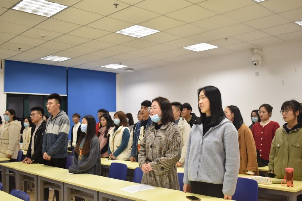 会议伊始,2020级团支部支书万喜介绍此次活动的背景和意义,宣布主题团日活动的开始,文体委员任康带领全体成员齐唱团歌。