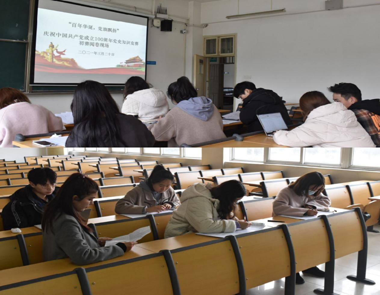 (通讯员 吕小慧 摄影 朱永杰)为庆祝中国共产党成立100周年,重温中国共产党走过的光辉历程,加强学生的思想政治教育,提升学生自身的理论素养,3月20日下午,马克思主义学院在文添楼203举办以“百年华诞,党旗飘扬”为主题的党史知识竞赛初赛。此次竞赛活动面向全校学生,由72名同学组成的24支队伍出席并参加了初赛。