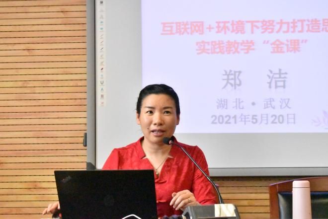 随后,郑洁教授作以“互联网+环境下努力打造思政实践教学‘金课’”为主题的党课讲座。郑洁教授从互联网+环境下打造思政实践金课的政策依据、面临问题、探索实践等三个方面进行了详细的阐述。郑洁教授表示,当今的时代是一个信息网络时代、全媒体时代和大数据时代,全国上下都做好了打造思想政治理论实践“金课”的准备,但依然面临着中央高度重视与各地各校重视程度差异问题、理论教学与实践教学的学时学分如何分配问题、思政课教师的认识度与学生的参与度不一的问题等五个方面的问题。郑洁教授向与会人员介绍了重庆邮电大学打造的思想政治理论实践课的经验:总结“12345678”的开设特点,以线上教学为主要方式,致力于打造“红色主题参观”、“国情调研”等六大模块的实践教学体系。