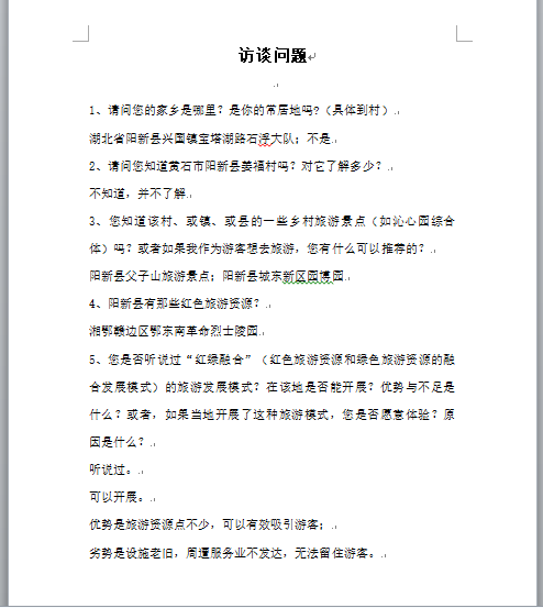 本次访谈对象主要为阳新县当地居民,因疫情防控原因,我们采取线上访谈方式,通过电话、语音以及腾讯会议等渠道,加之材料的搜集,相继对仙岛湖、七峰山、富水水库、文峰塔、沁心园田园综合体等旅游景点进行线上考察,访谈籍贯在阳新县或姜福村的湖北师范大学在校生。在谈及当地旅游资源时发现,当前阳新县红色旅游宣传模式较为传统,主要宣传途径为网页百度百科,以及部分推文,宣传效果大打折扣,当今时代,是信息互通的网络时代,阳新县在旅游发展过程中应大力引进旅游专业人才,拓宽宣传渠道。