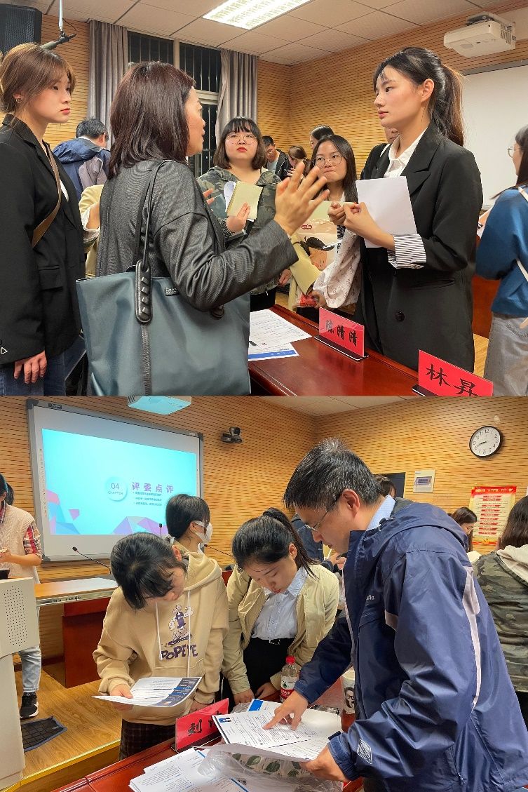 第三部分为颁奖环节。本次比赛经过精彩角逐,周惠珍、杜越、汪子昂三位同学表现突出,获得一等奖;余晓倩、杨夏等六位同学获得二等奖;曾冠萍、周爽等十五位同学获得三等奖;袁德华同学获得最佳简历奖,陈清清老师、熊卫老师、刘洁老师分别为他们颁奖。