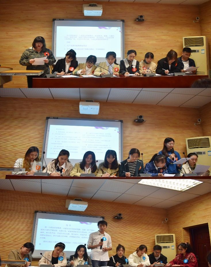 此次比赛由24位选手报名参加,共分为4个部分。第一部分为无领导小组模拟面试环节:参赛选手分为三组,根据比赛规则和章程进行个人陈述、自由讨论以及总结陈述,依次展示其风采。最后四位老师根据提交过来的18份简历选出一位“最佳简历制作奖”。