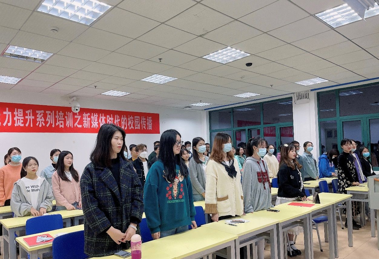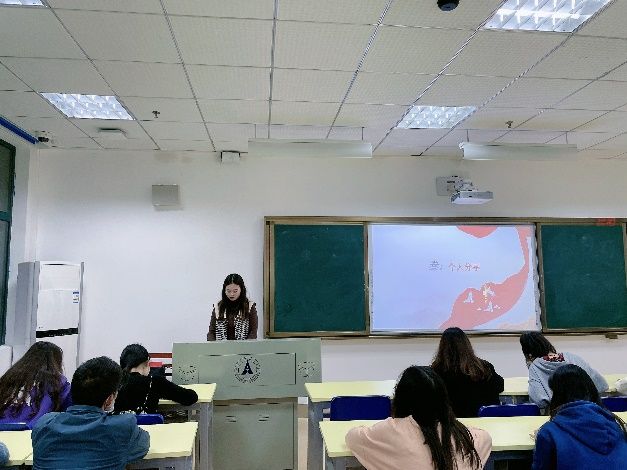 首先,团支书张金燕同学向同学们介绍了本次活动的背景和目的,并宣布活动正式开始。其次,由张金燕同学带领全班同学高唱团歌,激昂的青春旋律回荡在同学们的脑海之中,充盈着整个教室。