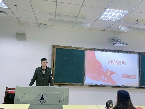 紧接着,活动进入第三个环节,由两位同学带来分享。首先,张金燕同学带来《刑场上的婚礼》(周文雍、陈铁军的革命爱情故事),她深情地讲述了这段特殊的爱情故事,带领同学们领略了存在于战争年代的丝丝温情;梁晓莉同学倾情讲述的红衣女战士——赵一曼同志的感人故事,让同学们更加深切地体会到战争年代革命先烈无私奉献的精神和不畏强敌的英雄气概。