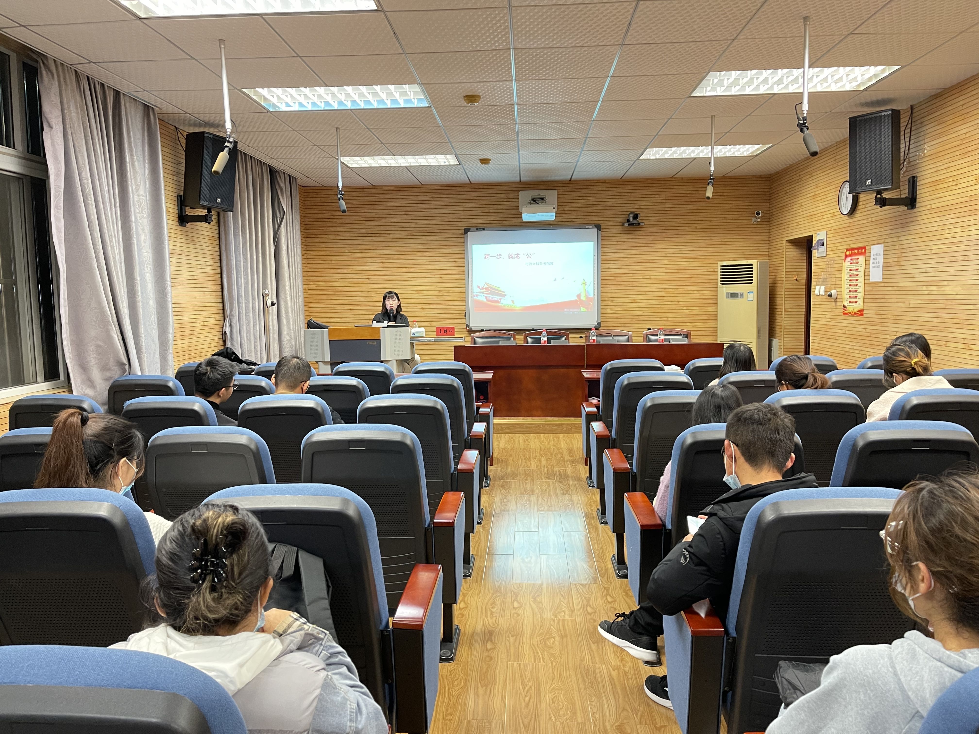 (通讯员 郑寒)为进一步推动马克思主义学院2022届毕业生高质量高水平就业,鼓励毕业生提前做好就业准备,提升学院学生整体就业素质和就业能力,不断推进精准化就业服务,结合毕业生就业服务需求调查情况,学院积极联络校外资源,拓展就业渠道,依托中公教育于11月16日晚19时在文沛楼409会议室开展“跨一步、就成‘公’”培训指导会。本次培训指导会特邀中公教育雷蕾老师主讲,学院2022届有意参加公职考试的毕业生、部分想提前了解考试情况的研究生参加了此次培训。