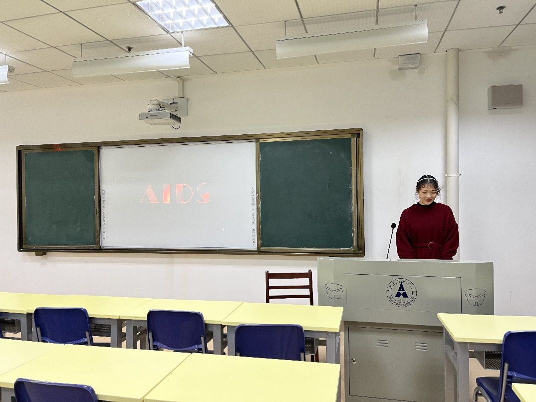 此次班会分为四个部分,首先由团支书张金燕为同学们介绍此次主题班会的活动目的,并宣布班会正式开始。接着,班会进行第二项,由张金燕为同学们介绍艾滋病是什么、艾滋病的传播途径、艾滋病的特点以及艾滋病的预防措施。班会的第三项,由张金燕播放“艾滋病的公益宣传广告”,使同学们能生动而又深刻地认识艾滋病的危害。视频播放完毕后,2021级思想政治教育专业胡月涛同学和南焜同学主动分享自己的所感所思。