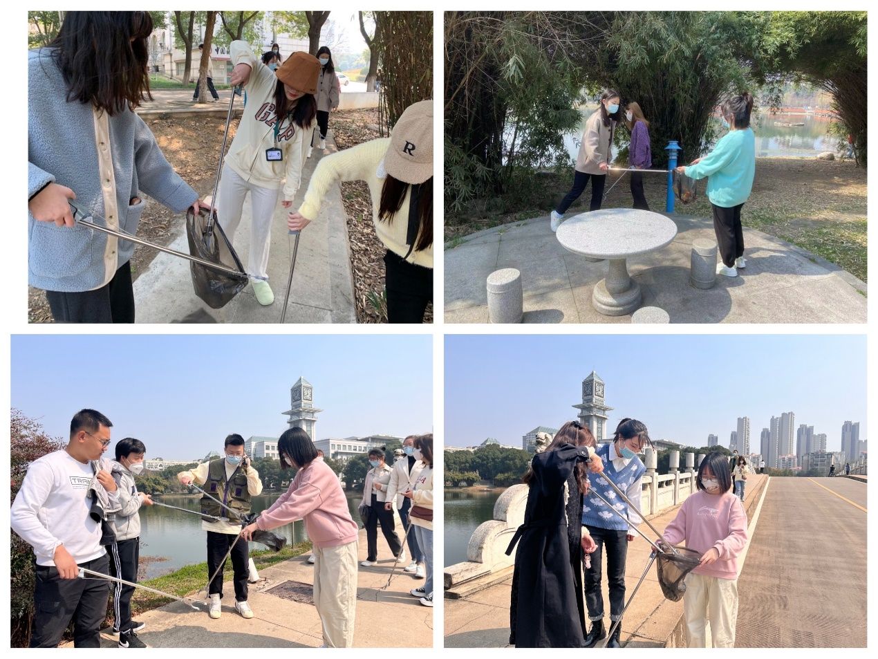 在本次活动中,我院主要负责第25号区域的卫生清洁工作。在集合领完物资之后,联络服务部将参与者分为两个小组对晓南湖畔进行了垃圾拾捡工作,展现了我院学生热心服务,积极向上的良好状态。两个小组分别负责晓南湖的湖东和湖西两片区域,活动开始一个小组从九孔桥出发对晓南湖西侧附近区域进行拾捡,另一小组从文波楼出发沿着修身路对滨湖宿舍附近展开了清扫工作。在对这些区域卫生清扫的过程中,同学们对堆积大量烟头和食品包装袋的卫生死角,以及人流量较大的宿舍楼前和食堂超市门口进行重点清理。此外,还将负责区域内的自行车进行规整。由此,该区域的卫生环境获得了较好的改善。最后,清扫任务完成后,同学们在集合点集中,并以合影留念结束了本次的实践活动。