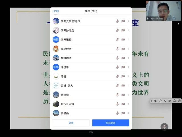 在提问交流环节,陈曙光教授针对同学们的疑问做了充分的解答,鼓励大家更充分了解国际局势及人类文明的重建。各高校与会人员积极参与交流讨论,会议现场气氛热烈。