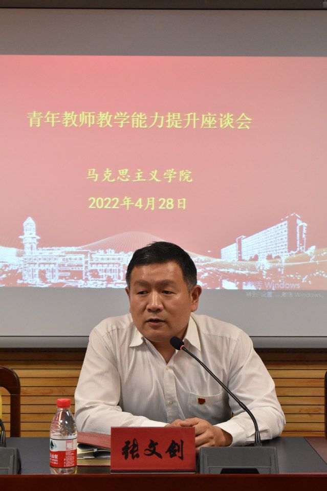 (通讯员 李丽珏 杨梦玲 摄影 袁克琪)为深入学习贯彻习近平总书记在中国人民大学考察时的重要讲话精神,4月28日下午,马克思主义学院在文沛楼409会议室召开青年教师教学能力提升座谈会,学院党委书记张文剑、副院长李世黎、副院长荣枢、思想道德与法治教研部主任徐春艳以及学院全体青年教师参加会议,会议由学院副院长李世黎主持。