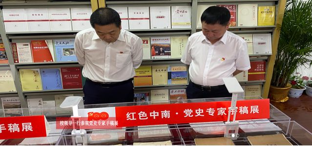 院党委每年制定并严格落实年度党建工作方案。学院积极开展党史学习教育“七个一”活动和建党100周年庆祝系列活动,取得良好实效。一是打造“红色中南·党史大讲堂”系列讲座,邀请韩庆祥等著名专家莅临讲学,在直播平台刊播,超25万人次观看;二是建设红色中南·党史阅览室,手稿展得到了教育部党史学习教育第十巡回指导组和省委常委王艳玲同志高度肯定。