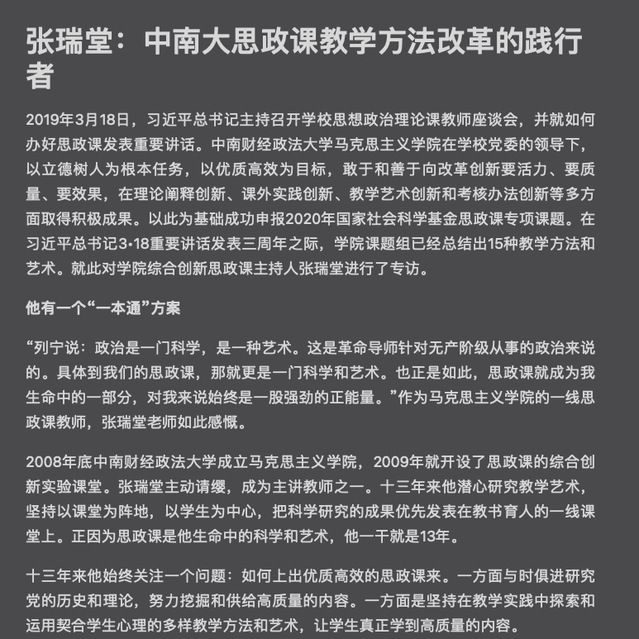 切实推进习近平新时代中国特色社会主义思想进教材、进课堂、进头脑。不断更新课程设置,开设《习近平新时代中国特色社会主义思想概论》课程;联合党委宣传部、教务部等部门打造校领导“同上一门课”特色思政课品牌,各教研部青年教师们参与担任校领导助教;打造校史文化与中南大精神、中华民族共同体意识教育、社会主义五百年发展史等系列红色通识选修课,将红色基因融入青年血脉。