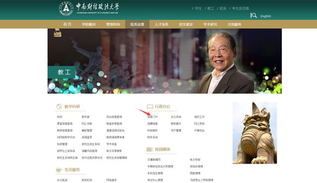 2、点击右上角“教工”,再点击“信息门户”,统一身份认证登录