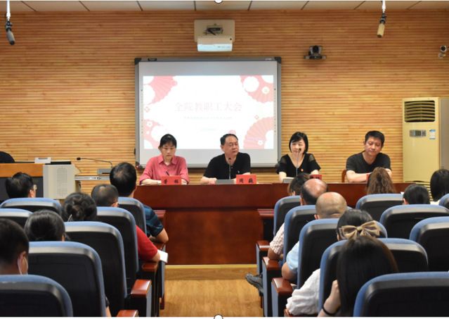 本次大会共有三项议程。大会第一项,为郭磊老师、邓国元老师、严建生老师举办荣退仪式。院长周巍现场颁发荣退证书,并对三位老师的工作表达了认同和肯定,希望在职老师能学习他们的工作经验和奉献精神,共同推动学院的高质量发展。荣退老师也发表了感言,表示将一如既往地关注和支持学院的发展。