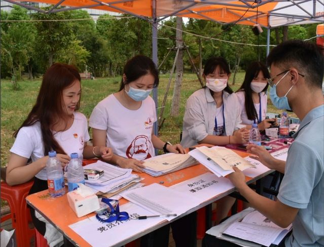 (通讯员 李金亭 摄影 郑寒)为彰显党员服务意识,发挥党员的先锋模范作用,充分展现当代大学生的精神风貌,更好地为新生服务,9月1日,马克思主义学院研究生第二党支部党员在迎新工作点开展迎新服务工作。