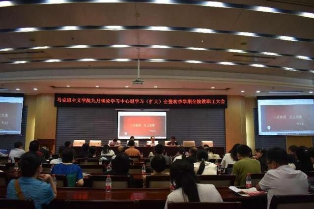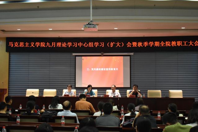 (通讯员 许昌管 摄影 纵鹏)9月15日下午,马克思主义学院于中原楼7楼会议室召开九月理论学习中心组(扩大)学习会暨秋季学期全院教职工大会,本次会议由马克思主义学院党委书记邓杨主持,校党委常委、党委宣传部部长兼马克思主义学院院长周巍,其他领导班子成员及全体教职工参加。