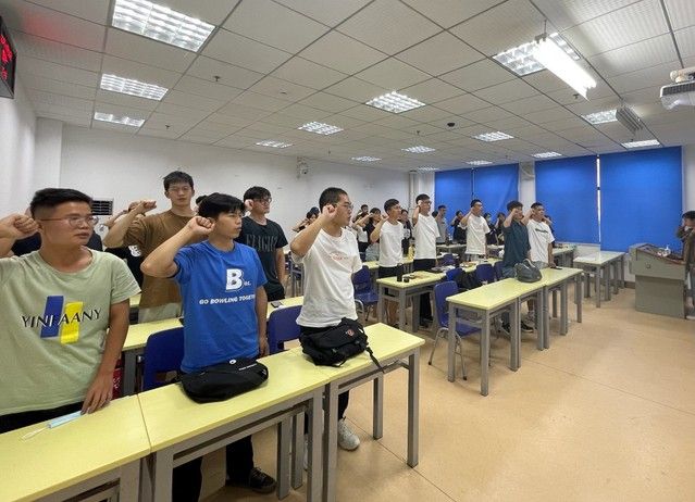团支书彭卓曦向大家简要介绍了本次活动的主要目的和主要内容,并宣布活动正式开始。首先,彭卓曦同学带领全班同学高唱团歌,激昂的青春旋律充盈着整个教室,回荡在每一位团员的脑海之中。紧接着,全体团员重温入团誓词。全体团员们举起右手,面对团旗郑重宣誓,重温加入中国共产主义青年团的光辉历程。