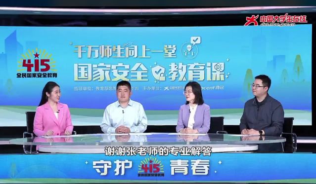 (通讯员 郑寒 摄影 郑寒)为进一步贯彻落实总体国家安全观,感悟新时代国家安全成就,为迎接党的二十大胜利召开营造良好氛围,“中国大学生在线”公众号于4月14日15时,开展“千万师生同上一堂国家安全教育课”主题教育,此次活动由教育部思想政治工作司指导,中国大学生在线以及腾讯共同推出,马克思主义学院学子汇集云端,通过网络直播形式积极参加。