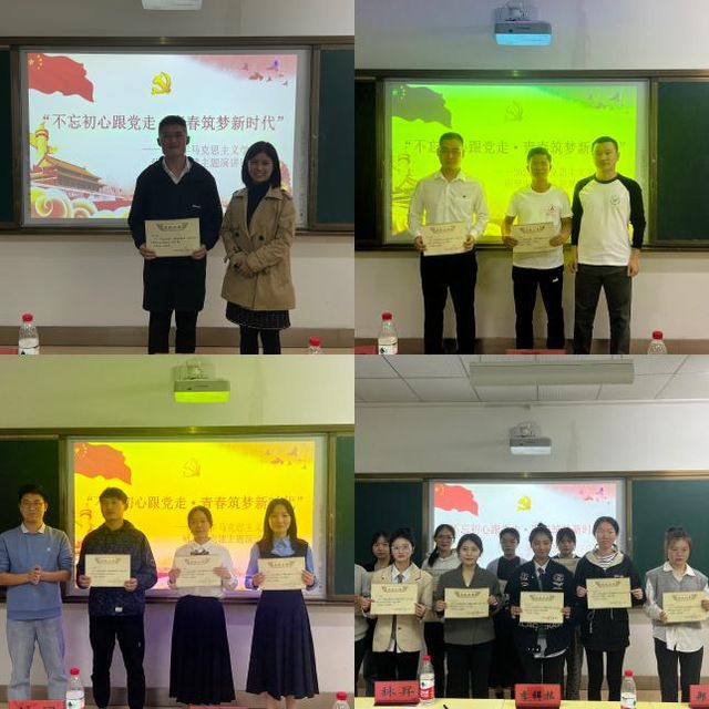 活动最后由四位评委为各位获奖选手颁奖,并合影留念。本次演讲比赛的成功举行,丰富了我院研究生党建活动的形式和载体,增强了我院2022级研究生坚定不移听党话、跟党走的信心和决心,有助于引导广大学子进一步坚定理想信念、切实担负起时代赋予的重任。