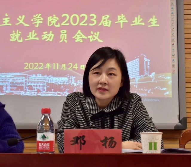 (通讯员 王豪男 摄影 陈丹丹)为贯彻落实党的二十大报告提出的强化就业优先政策的精神要求,落实教育部促就业系列文件精神,更好服务2023届毕业生求职就业,11月24日下午,马克思主义学院于文沛楼409会议室召开2023届毕业生就业动员会议。学院党委书记邓杨、副院长李世黎、副院长荣枢出席会议,毕业年级辅导员林昇、汉口学院思政课教师、学院2021届优秀校友周彦君及全体2023届毕业生参会。会议由院党委书记邓杨主持。