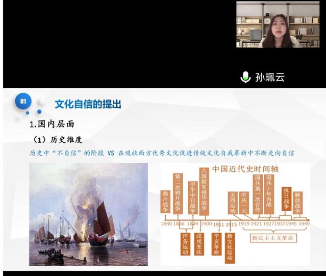 孙珮云老师围绕“推进文化自信自强,铸就社会主义文化新辉煌”这一主题,从文化自信的提出、文化自信的内容以及如何坚定文化自信三个方面进行讲述,指出要坚定不移推进中华优秀传统文化“创造性转化”和“创新性发展”,提升公共文化服务水平,提升国家文化软实力。