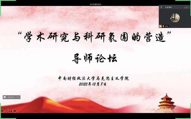 为增进学术研究交流,提高人才培养质量和科学研究水平,加强导师队伍建设,马克思主义学院于12月8日在线上召开以“学术研究和科研氛围的营造”为主题的导师交流会。马克思主义学院副院长荣枢,各学科群教师代表以及六位新晋导师参与此次论坛。此次会议由马克思主义学院副院长荣枢主持。