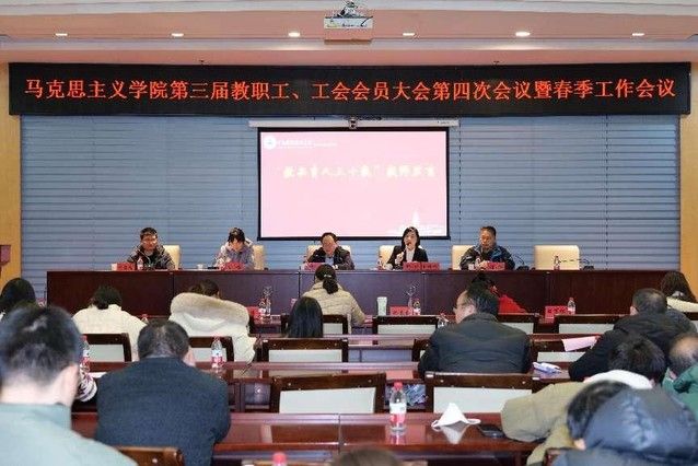 (通讯员 杨海佑)2月23日下午,马克思主义学院在中原楼七楼会议室召开第三届教职工、工会会员大会第四次会议暨春季工作会议。马克思主义学院党委书记邓杨主持,学院领导班子及全体教职工参加会议。