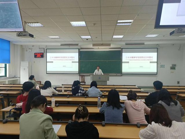 公共管理学院赵丽江教授以“党的性质和宗旨”及“二十大精神与马克思主义中国化”为主题,讲授了中国共产党是一个具有“一个核心”“两个先锋队”“三个代表”性质的无产阶级政党,全心全意为人民服务是党的根本宗旨,中国共产党领导是中国特色社会主义最本质的特征,是中国特色社会主义制度的最大优势。同时,她还将党的二十大精神与马克思主义中国化相结合阐述了党的二十大报告中相关内容,指出我们要接续推进马克思主义中国化、时代化,推动马克思主义基本原理同中国具体实际相结合、同中华优秀传统文化相结合。