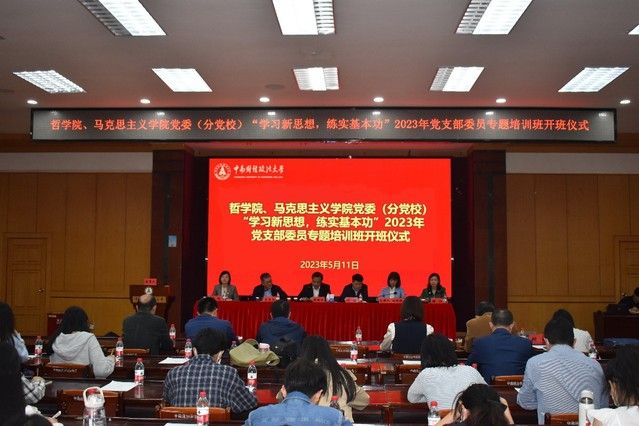 (通讯员 林昇 王豪男 摄影 陈丹丹 李祎)为深入学习贯彻党的二十大精神和习近平总书记关于教育的重要论述,扎实推进学习贯彻习近平新时代中国特色社会主义思想主题教育,坚持不懈用习近平新时代中国特色社会主义思想凝心铸魂,持续提升思想境界、加强党性修养、筑牢政治忠诚,5月11日,哲学院、马克思主义学院党委(分党校)在文潭楼四楼会议室联合举行“学习新思想,练实基本功”2023年党支部委员专题培训班开班仪式。校党委书记侯振发,党校教务长向前,哲学院、马克思主义学院领导班子成员和80余名师生党支部委员参加仪式。开班仪式由哲学院党委书记刘琳琳主持。